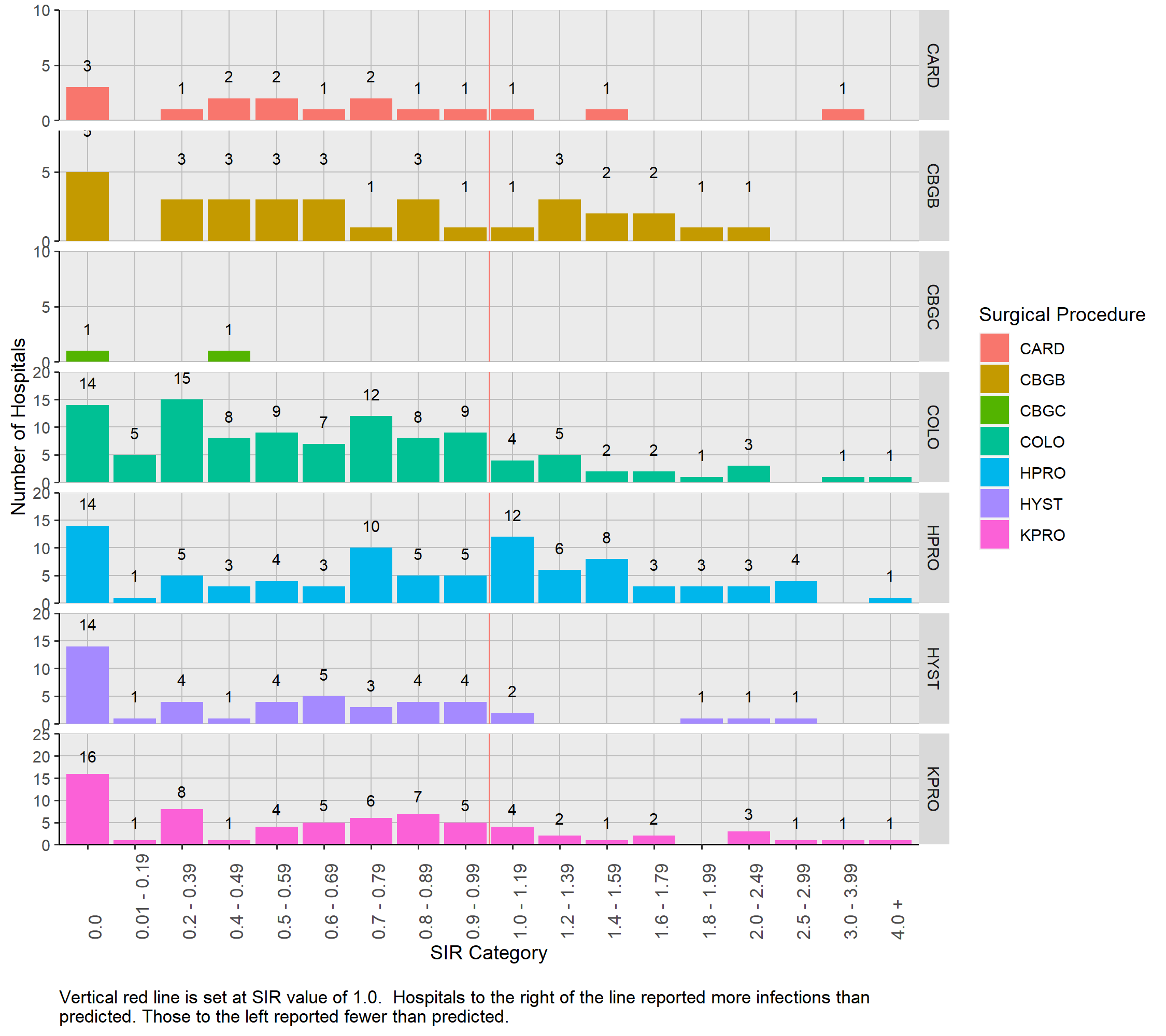 Figure A.1: Distribution of SSI SIRs Stratified by Surgical Procedure Type| Pennsylvania, 2020